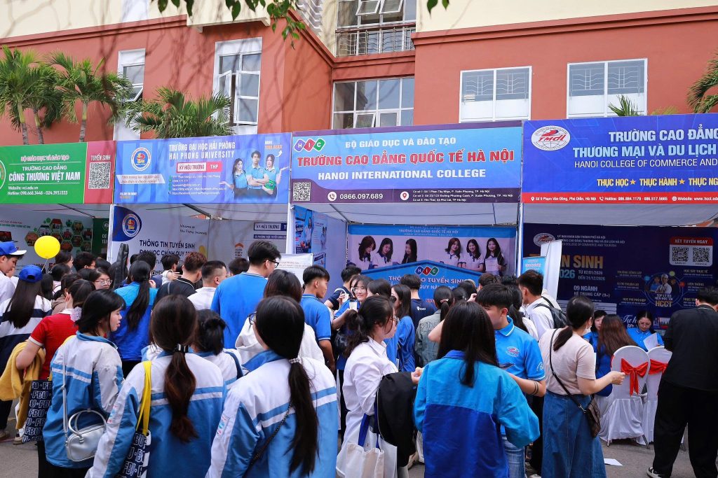 Xuất hiện tại Ngày hội Tư vấn tuyển sinh – Hướng nghiệp 2026 tại Trường Đại học Hàng Hải (Hải Phòng), gian hàng của Trường Cao đẳng Quốc tế Hà Nội đã thu hút đông đảo học sinh đến tham quan và trải nghiệm.